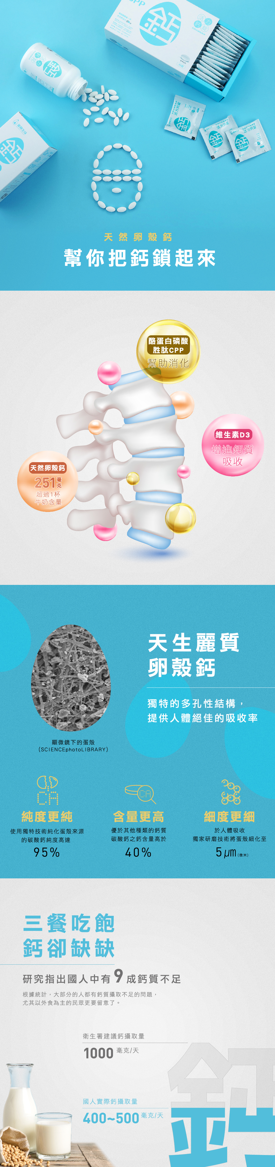 【天然卵殼鈣,多孔性結構人體吸收快】
